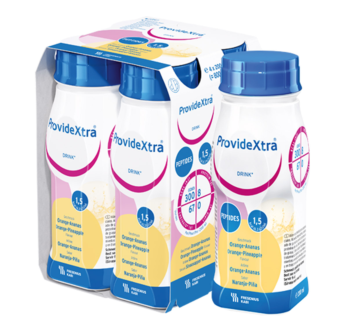 Το PROVIDEXTRA DRINK είναι Τρόφιμο γιά Ειδικούς Ιατρικούς Σκοπούς. Πόσιμο θρεπτικό συμπλήρωμα σε μορφή χυμού, υψηλής θερμιδικής αξίας, με υδρολυμένη πρωτείνη φυτικής προέλευσης.